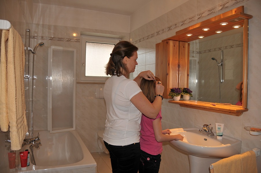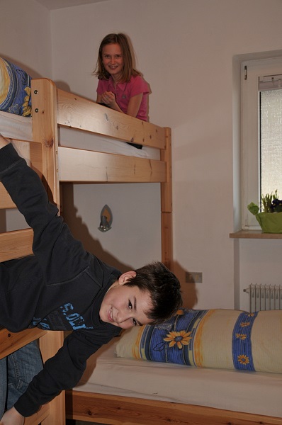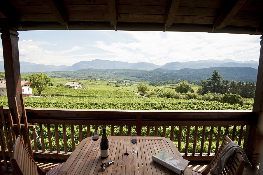 Count the dragon flies.....With its two balconies, this flat invites you to do some sight-seeing. On the one side, you will discover the Mendel Massif and Überetsch and on the other, observe your off-spring paddling in the swimming pond.