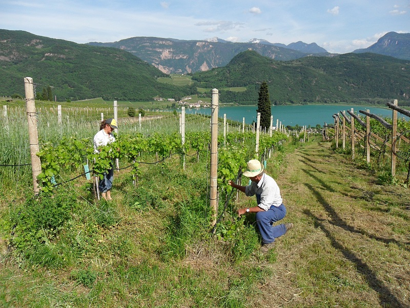 We are slightly lower and closer to Lake Caldaro, in the place where in ancient times (geological past) the Adige river flowed before natural events diverted it elsewhere. Here the roots of Merlots find their way into a soil rich in pebbles that the river deposited during its ancient floods.